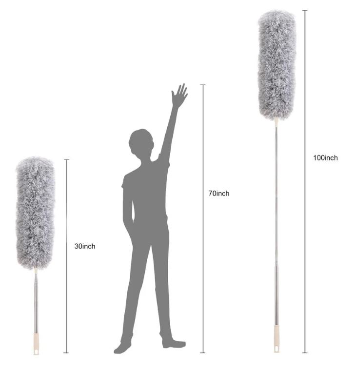 অতিরিক্ত লম্বা এক্সটেন্ডেবল: সহজেই সর্বোচ্চ ৩০ ইঞ্চি থেকে ১০০ ইঞ্চি পর্যন্ত প্রসারিত করা যায়। হালকা ওজনের এক্সটেনশন পোলের সাহায্যে, আপনি সিঁড়ি বা টুল ছাড়াই সবচেয়ে উঁচু ও দুর্গম স্থান সহজেই পরিষ্কার করতে পারবেন। আপনার পিঠ আপনাকে ধন্যবাদ দেবে!